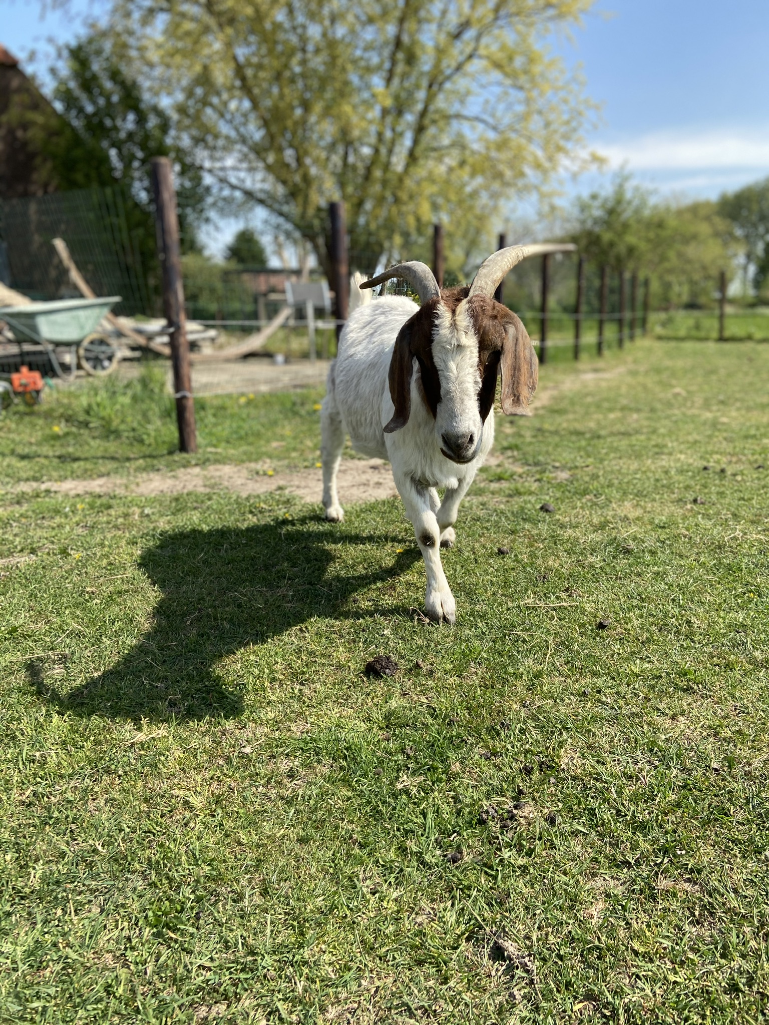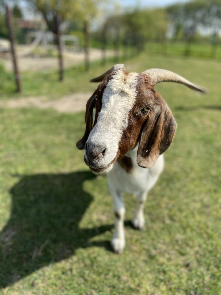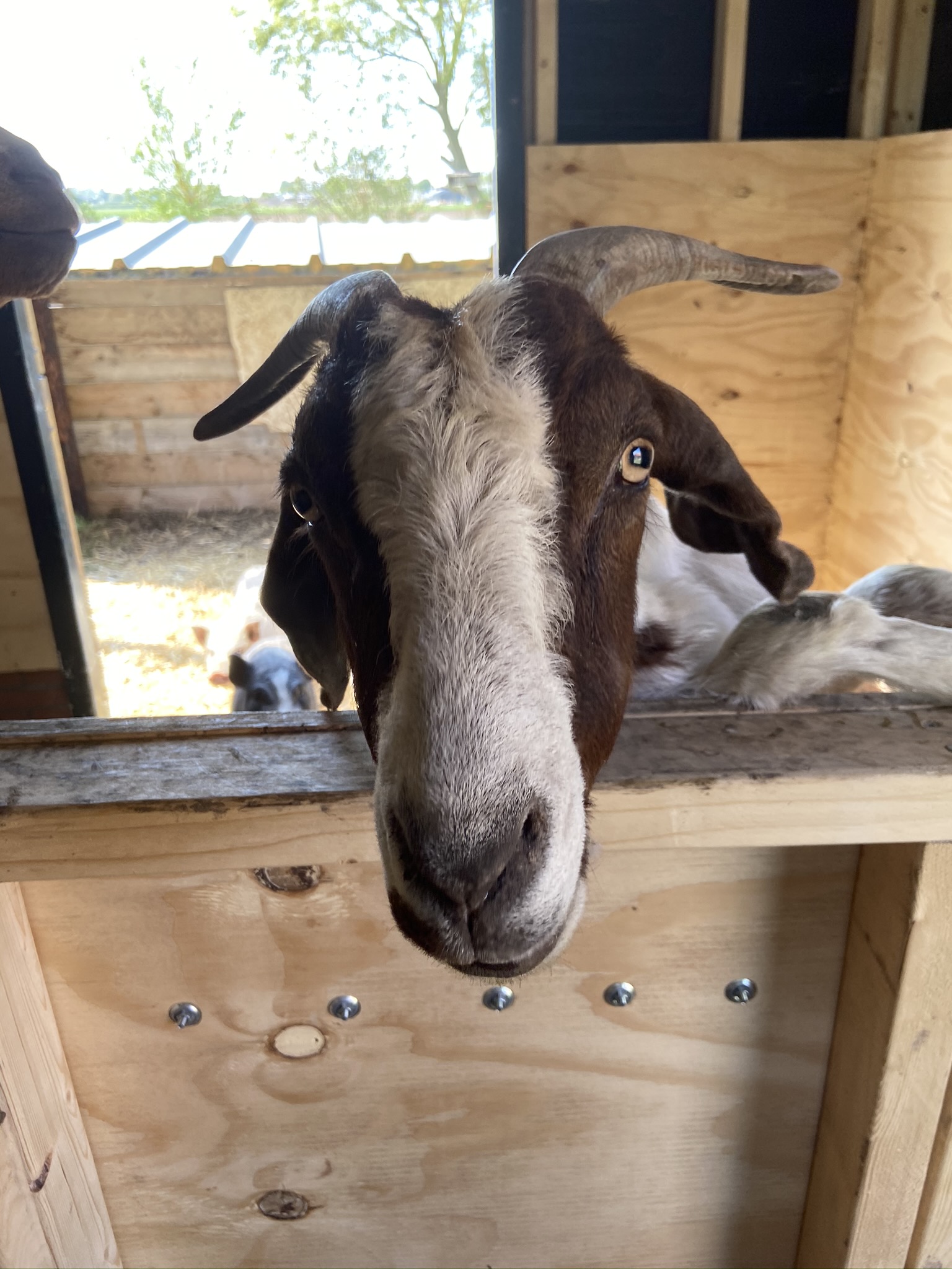 Oma geit, de oudste bewoonster van De Speeltol. Nee ze is niet zwanger, ze zorgt er wel voor dat ze niks te kort komt in de wei.