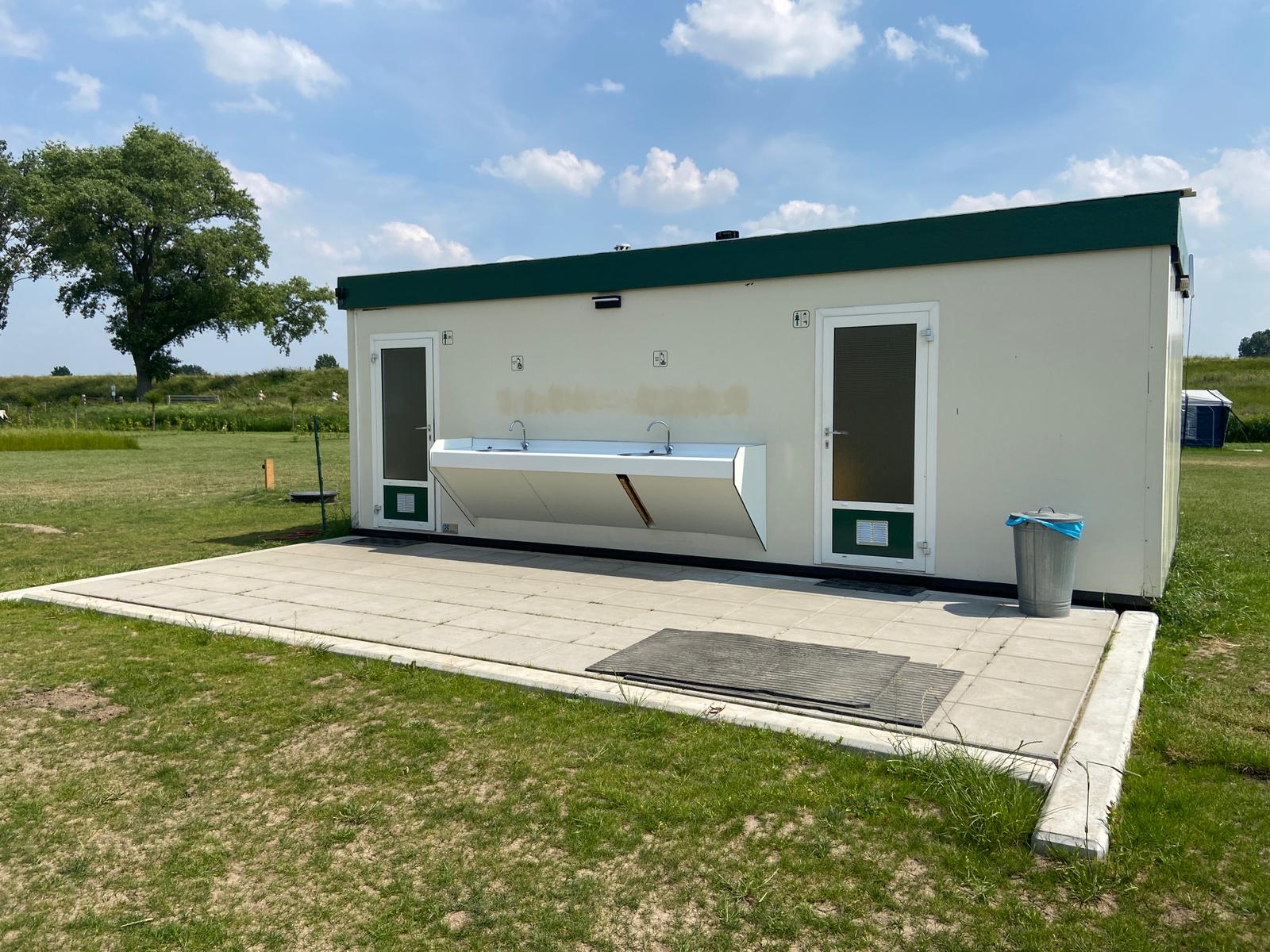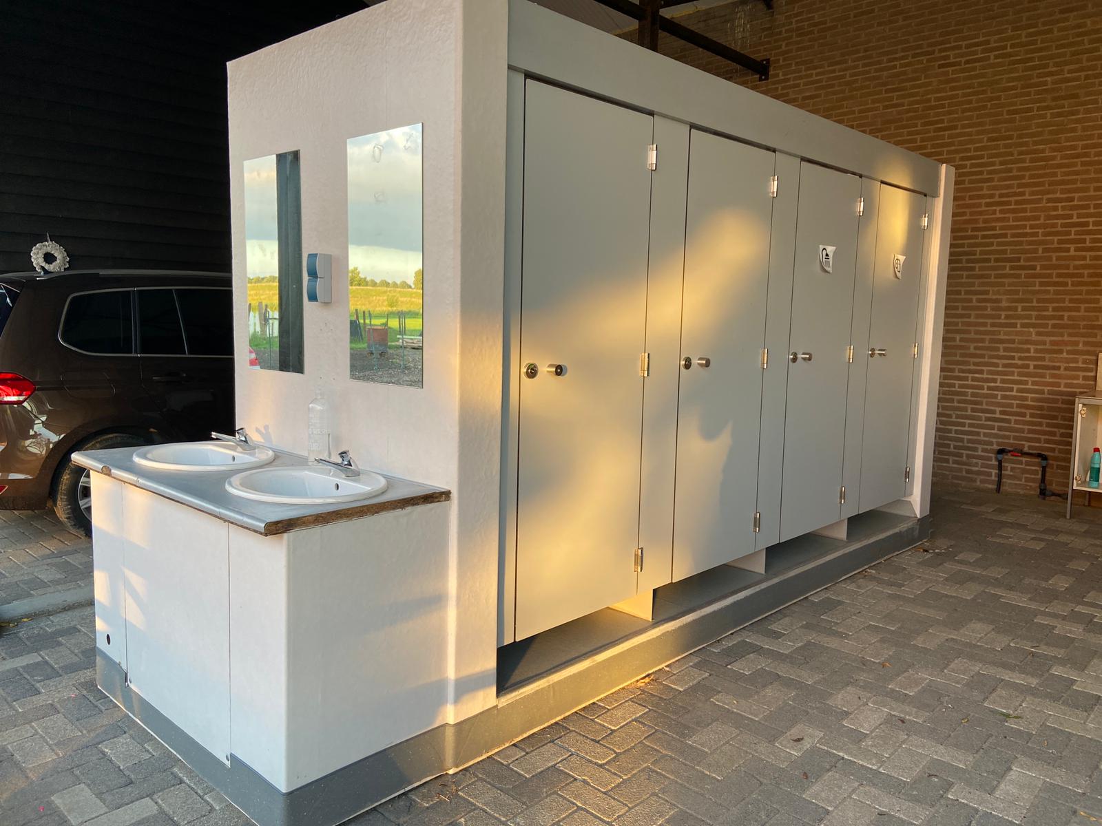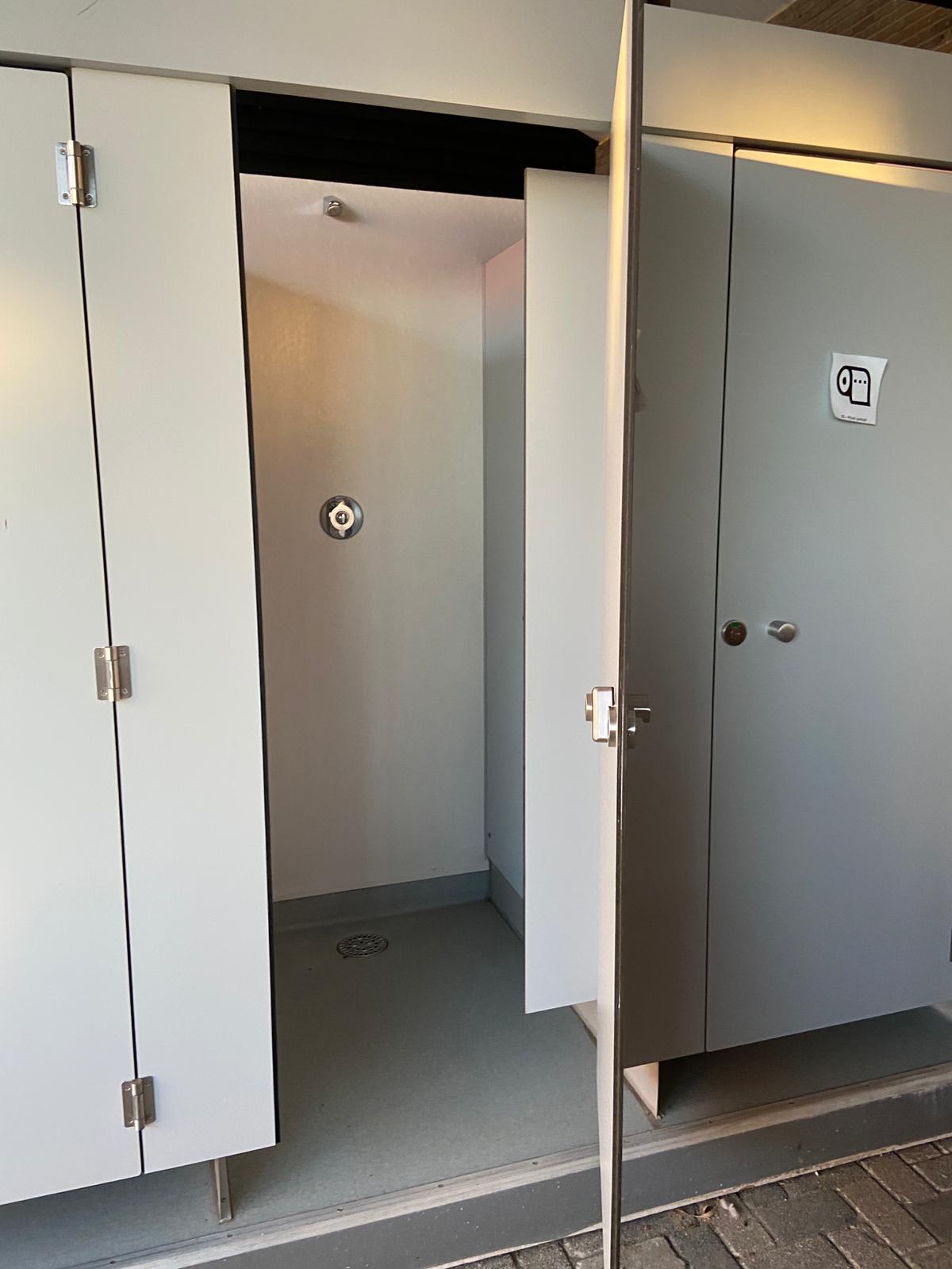 Onder de kapschuur, voor bij de horeca & terras, bevinden zich ook nog 2 douches en 2 toiletten.