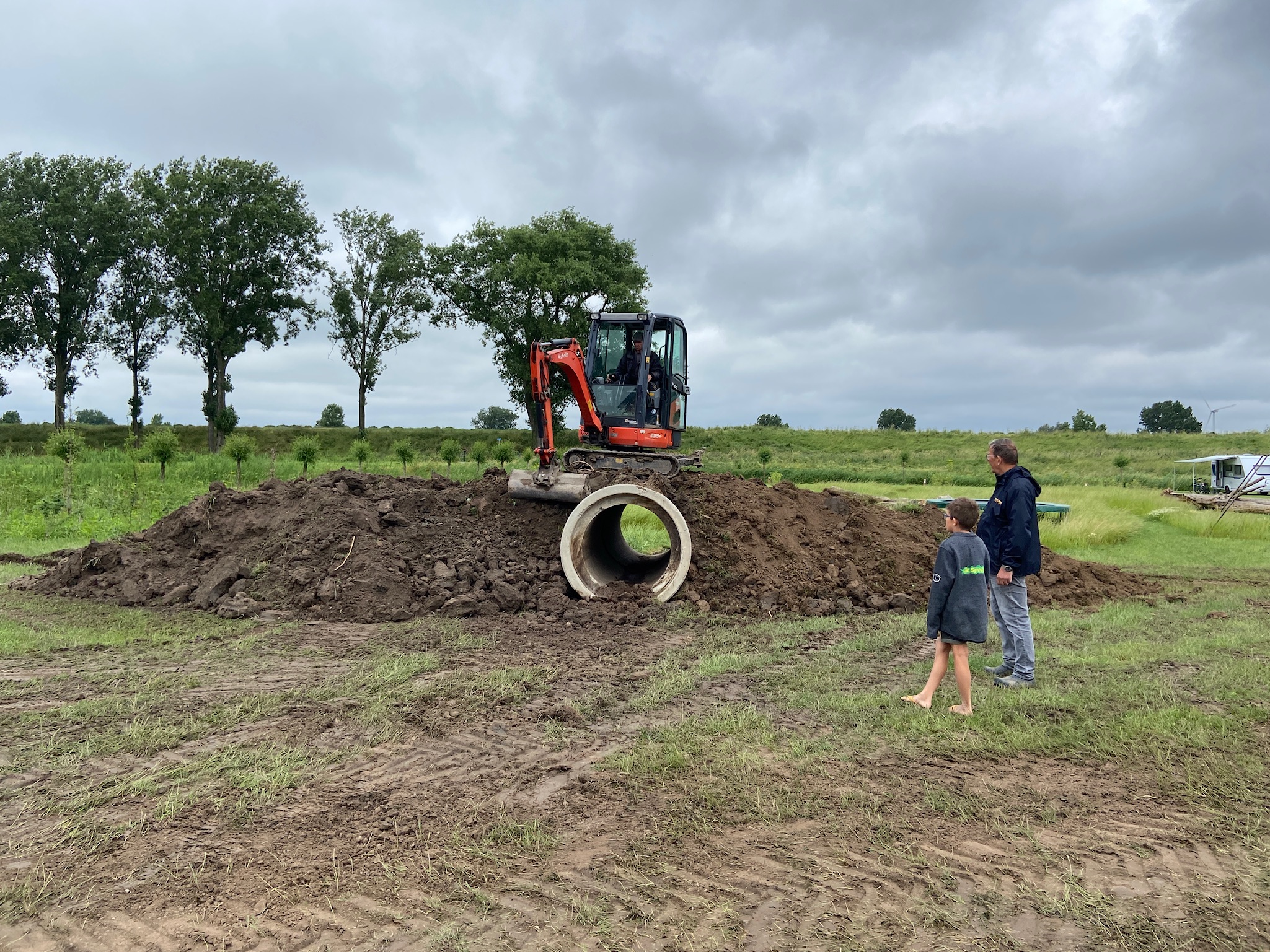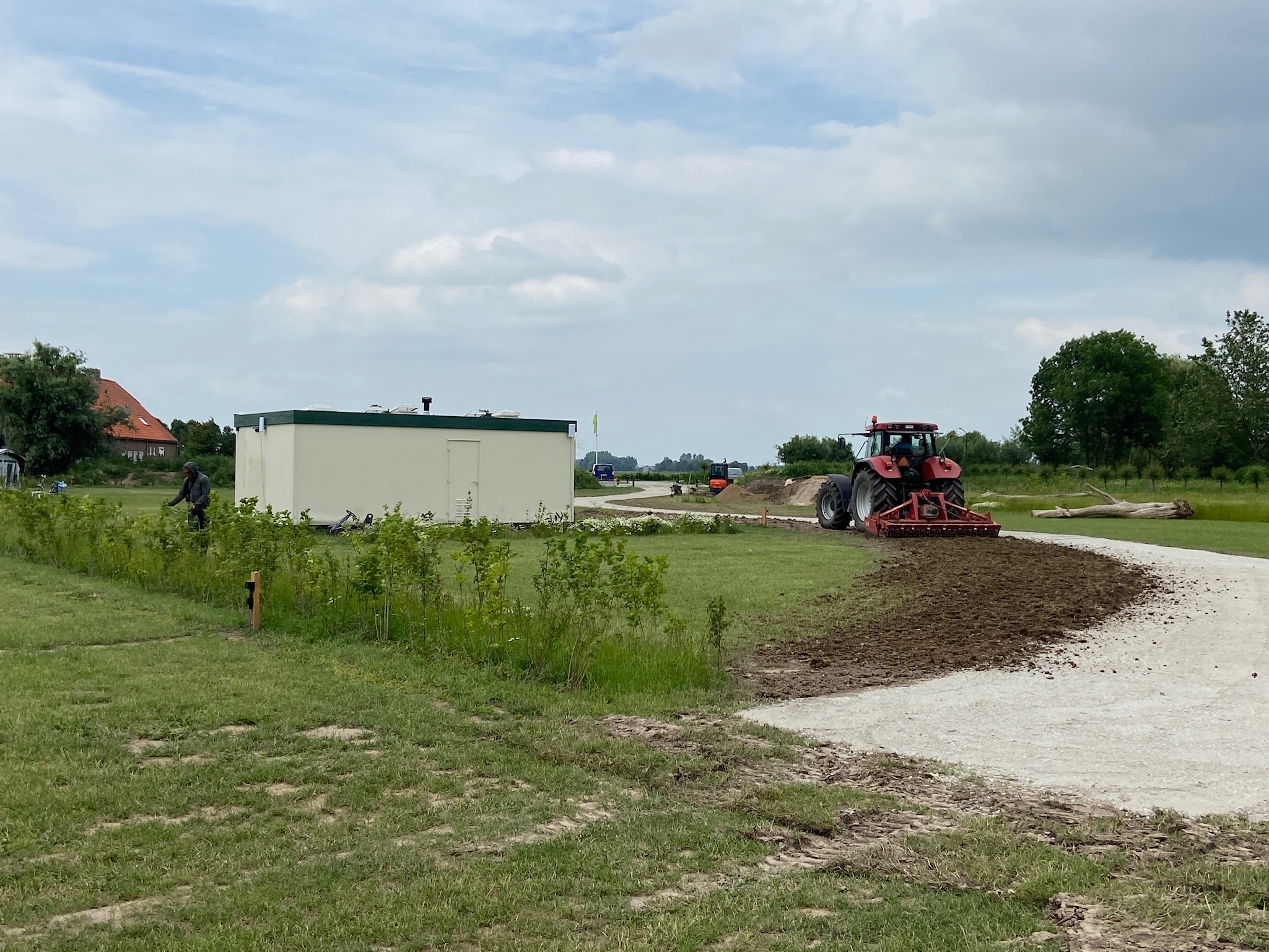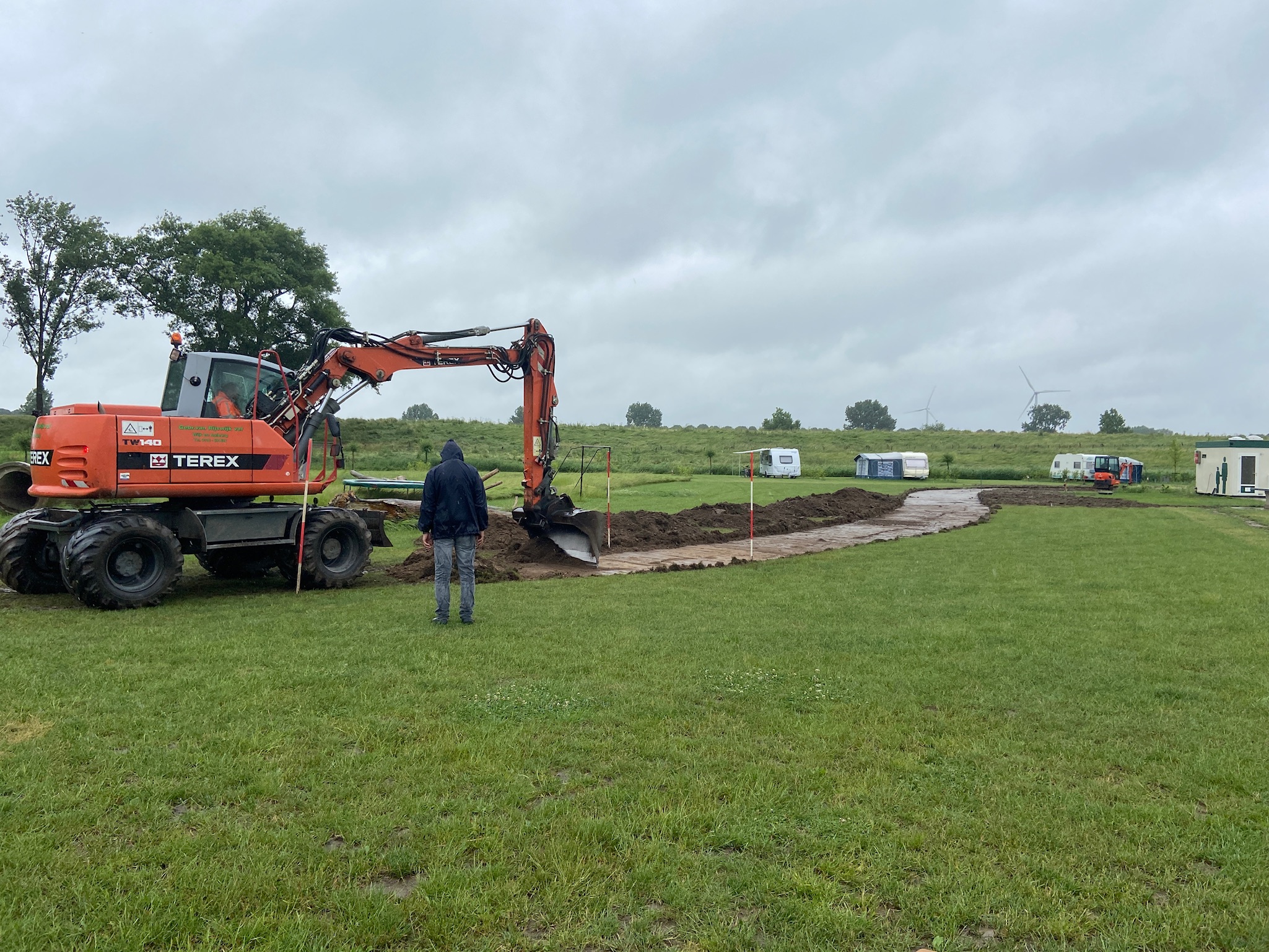 Het begin van het seizoen was erg nat, ook ons veld had hier last van. We hebben daarom een mooi pad aangelegd vanuit de parkeerplaats langs de natuurspeeltuin de camping op. We zijn erg blij met het resultaat.