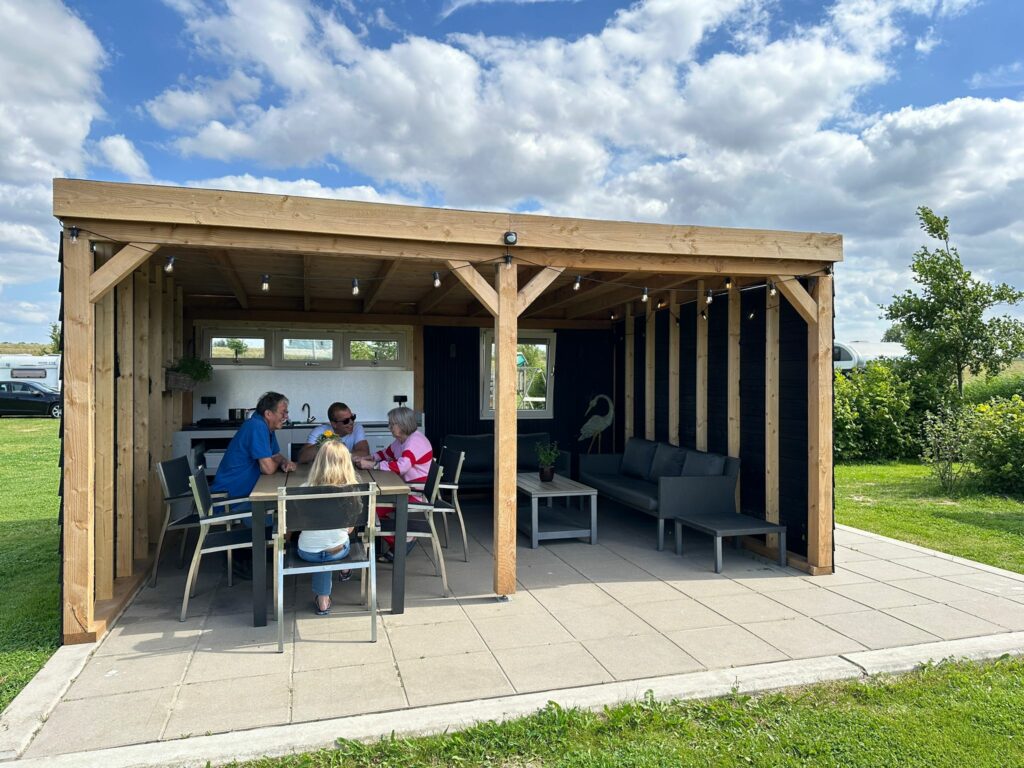 Onder de kapschuur, voor bij de horeca & terras, bevinden zich ook nog 2 douches en 2 toiletten.