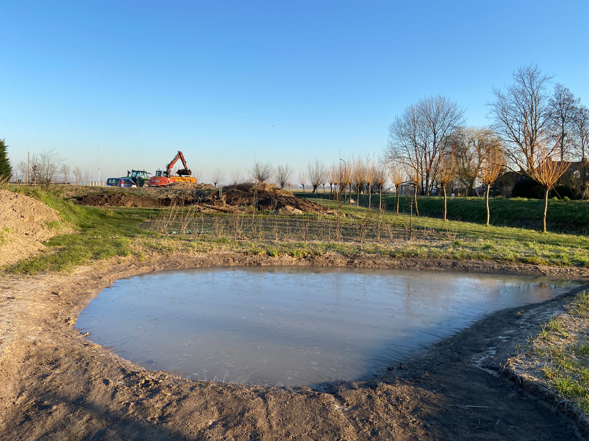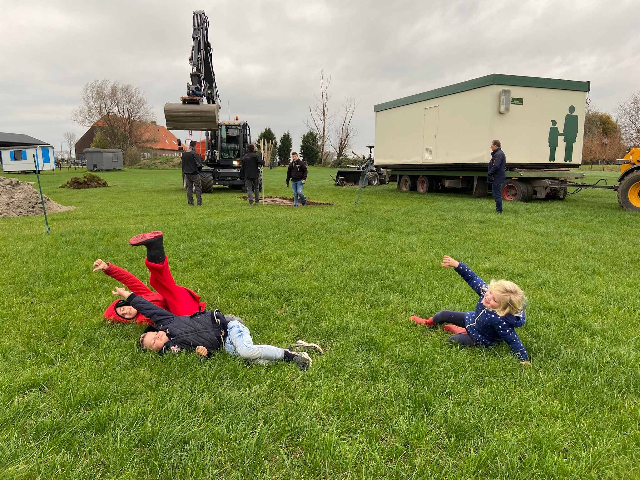 Voor ons 3e seizoen hebben we het achterste veld geheel opnieuw aangelegd. Het veld is geheel om gefreesd, vervolgens glad geschoven (zodat de afwatering richting de sloten of planten borders gaat) en opnieuw ingezaaid. We hebben meteen een aantal nieuwe bomen en enkele elektrapunten toegevoegd.