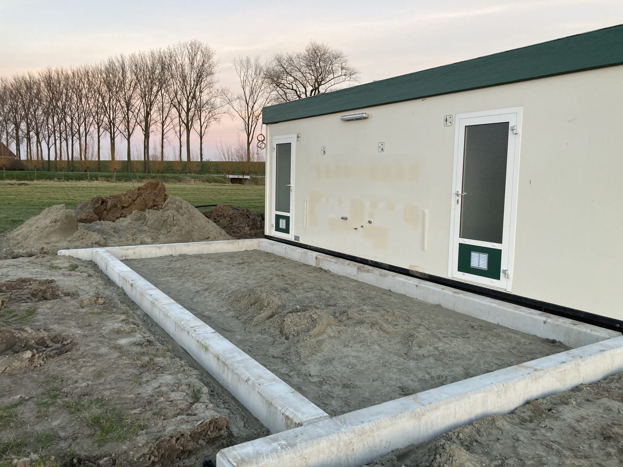 Voor het seizoen van 2021 hebben we de complete camping ingericht. Centraal een mooie sanitair unit geplaatst, en alle leidingen en stroom hierheen gelegd. We hebben een parkeerplaats gemaakt