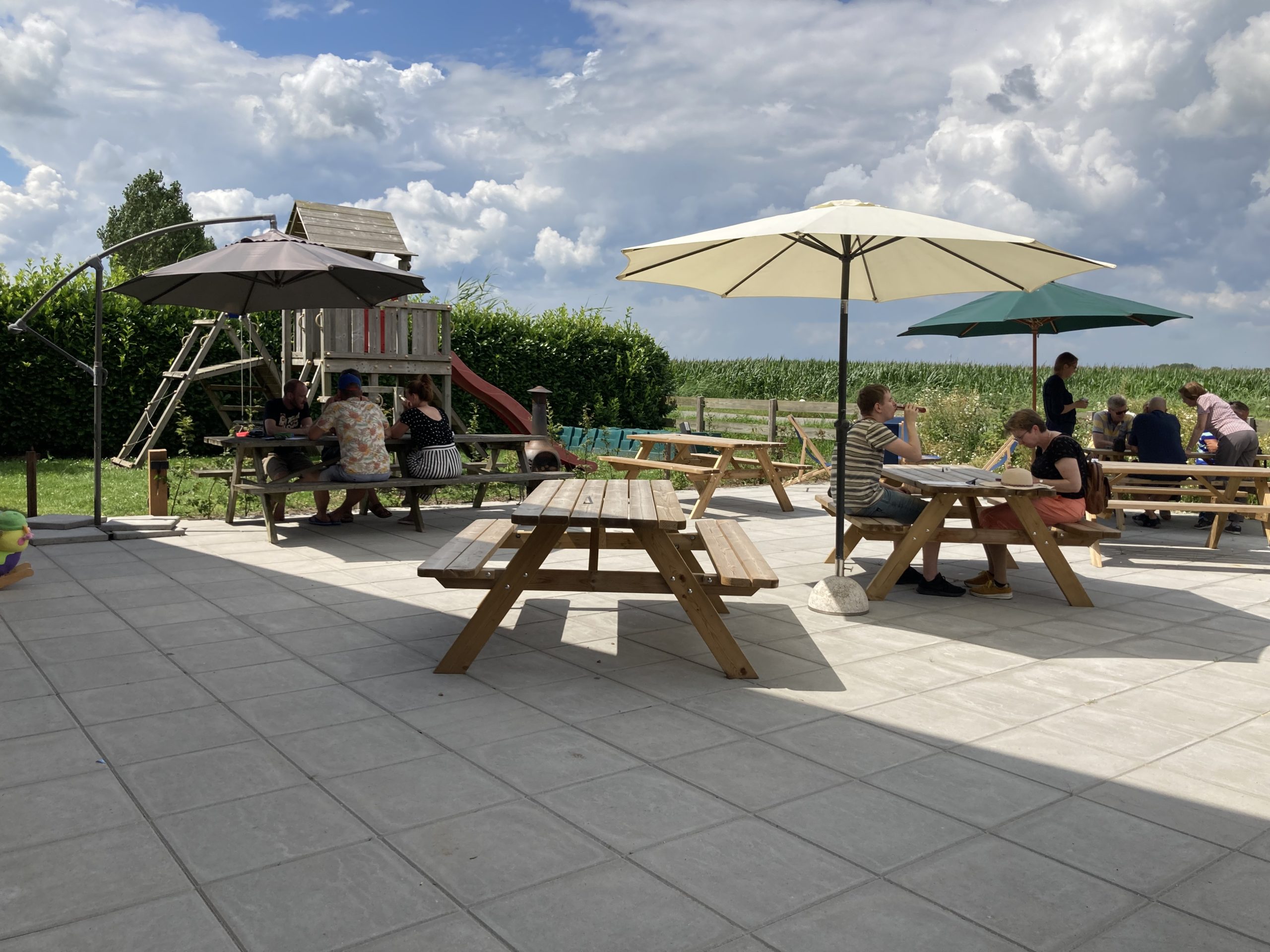 Aan de voorkant hebben we een mooi terras aangelegd en onze horeca geopend.