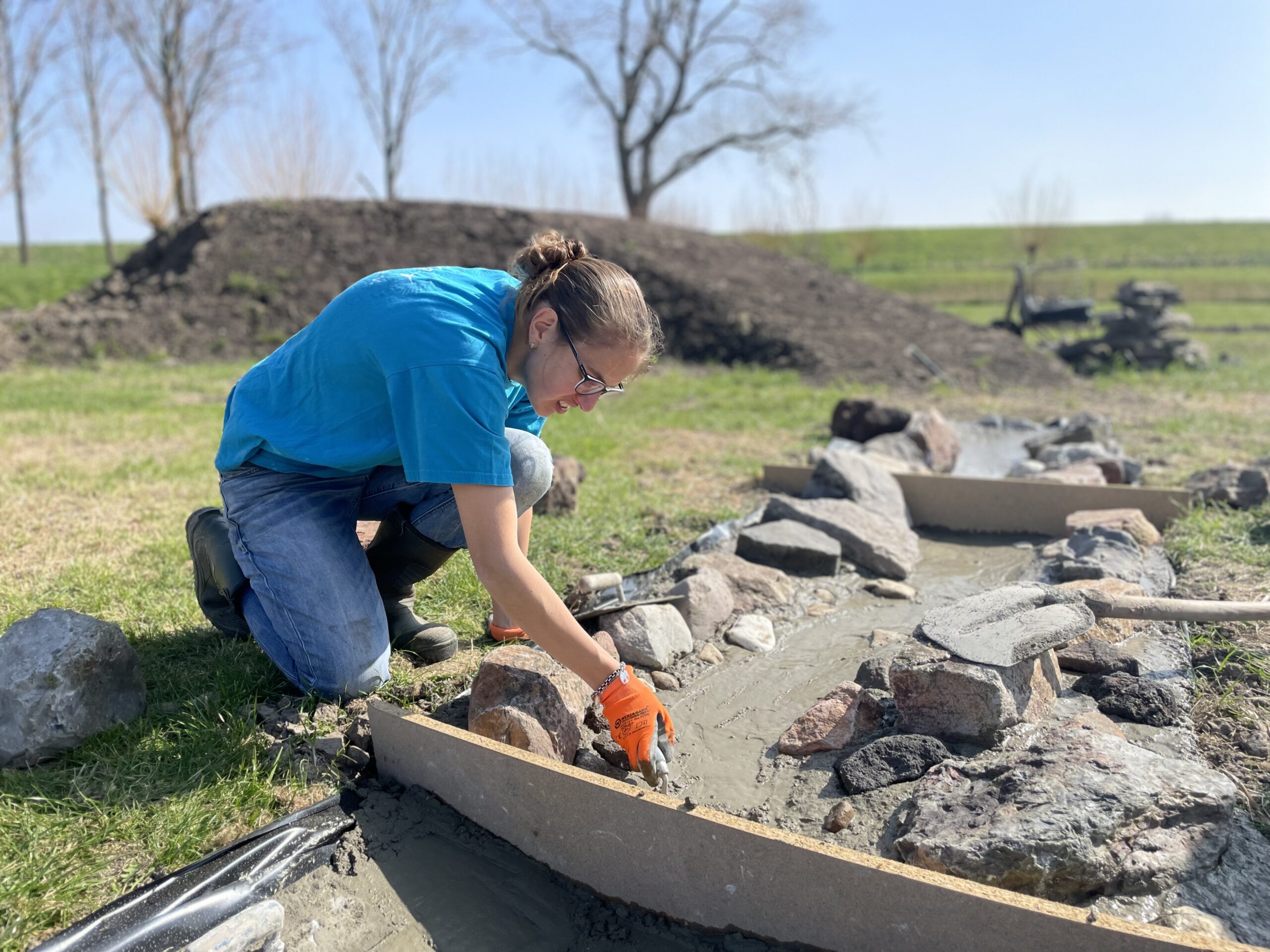 We hebben een waterpartij (wadi) aangelegd en een waterstroompje ernaartoe gemaakt. De wadi is heeft een diepte van maximaal 30-40cm en is geheel natuurlijk. Op onze grond betekend dat water met klei, heerlijk voor kinderen om mee te spelen. Het kan glad zijn en kinderen kunnen vies worden.