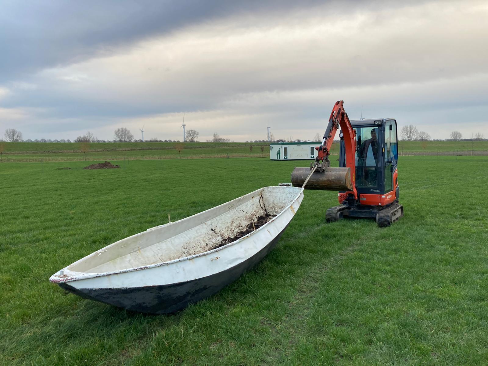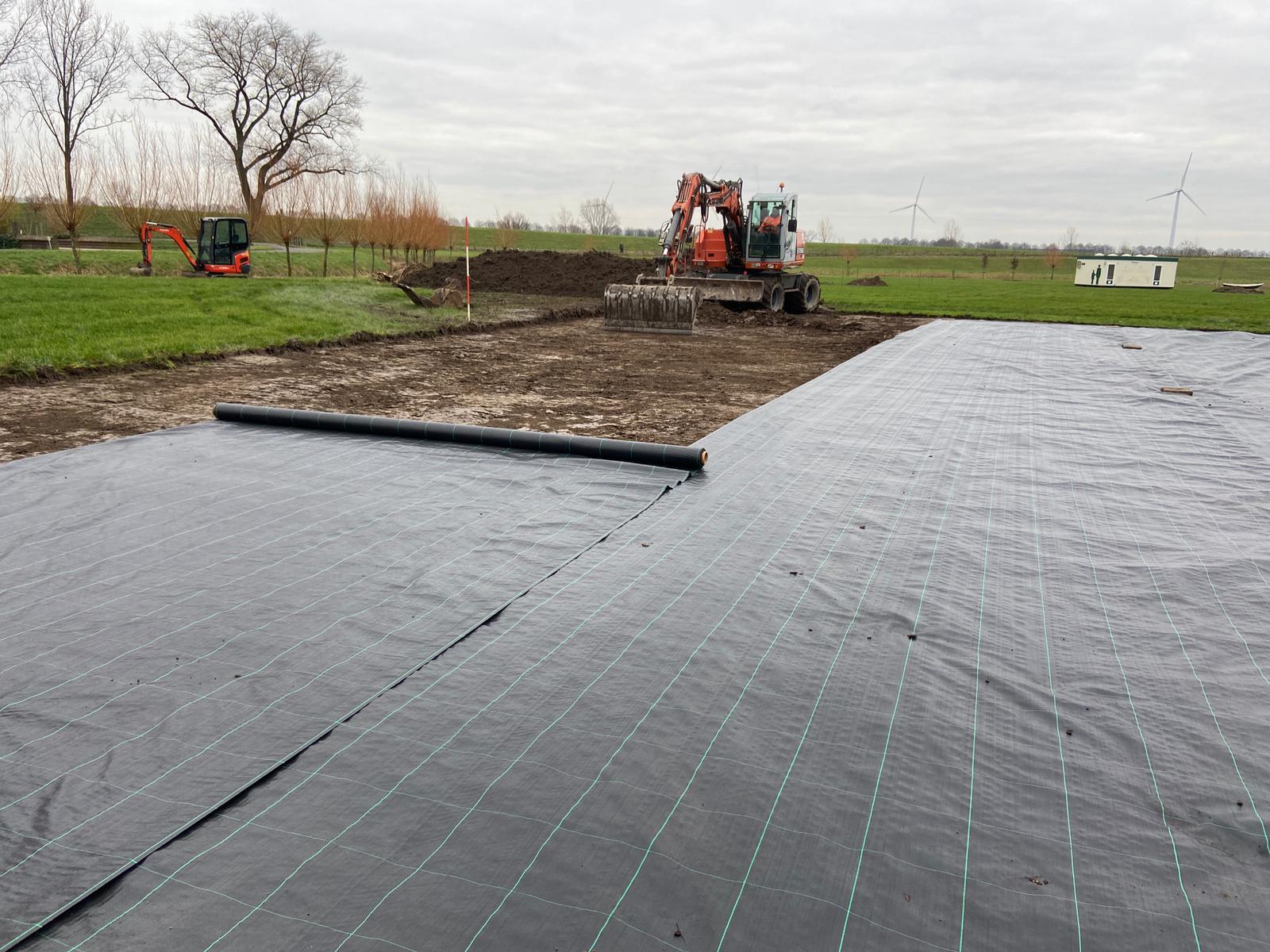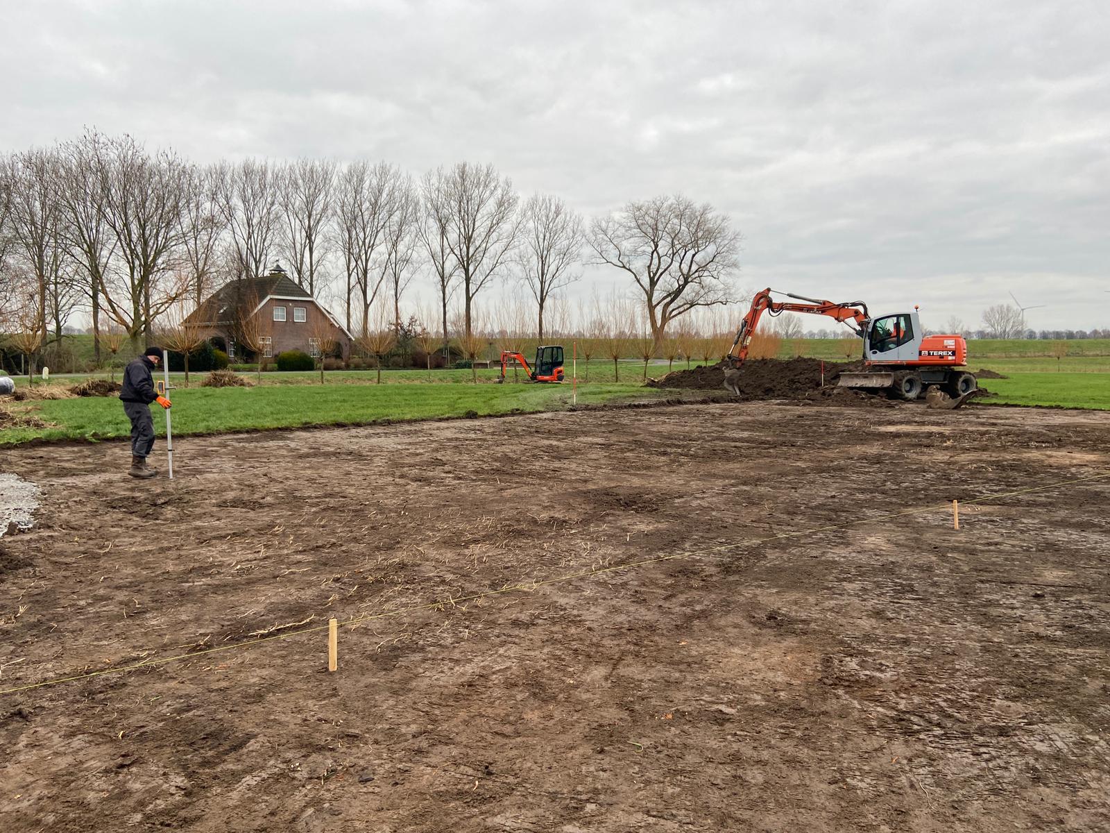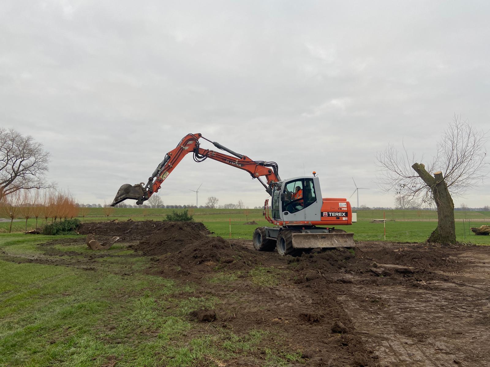 De inrit is uitgegraven en er is verharding aangebracht. Alles rondom de inrit en parkeerplaats is opgeruimd en vrij gemaakt. De parkeerplaats is uitgegraven en de grond in een wal er rondom heen gelegd en de verharding voor de parkeerplaats is aangebracht.