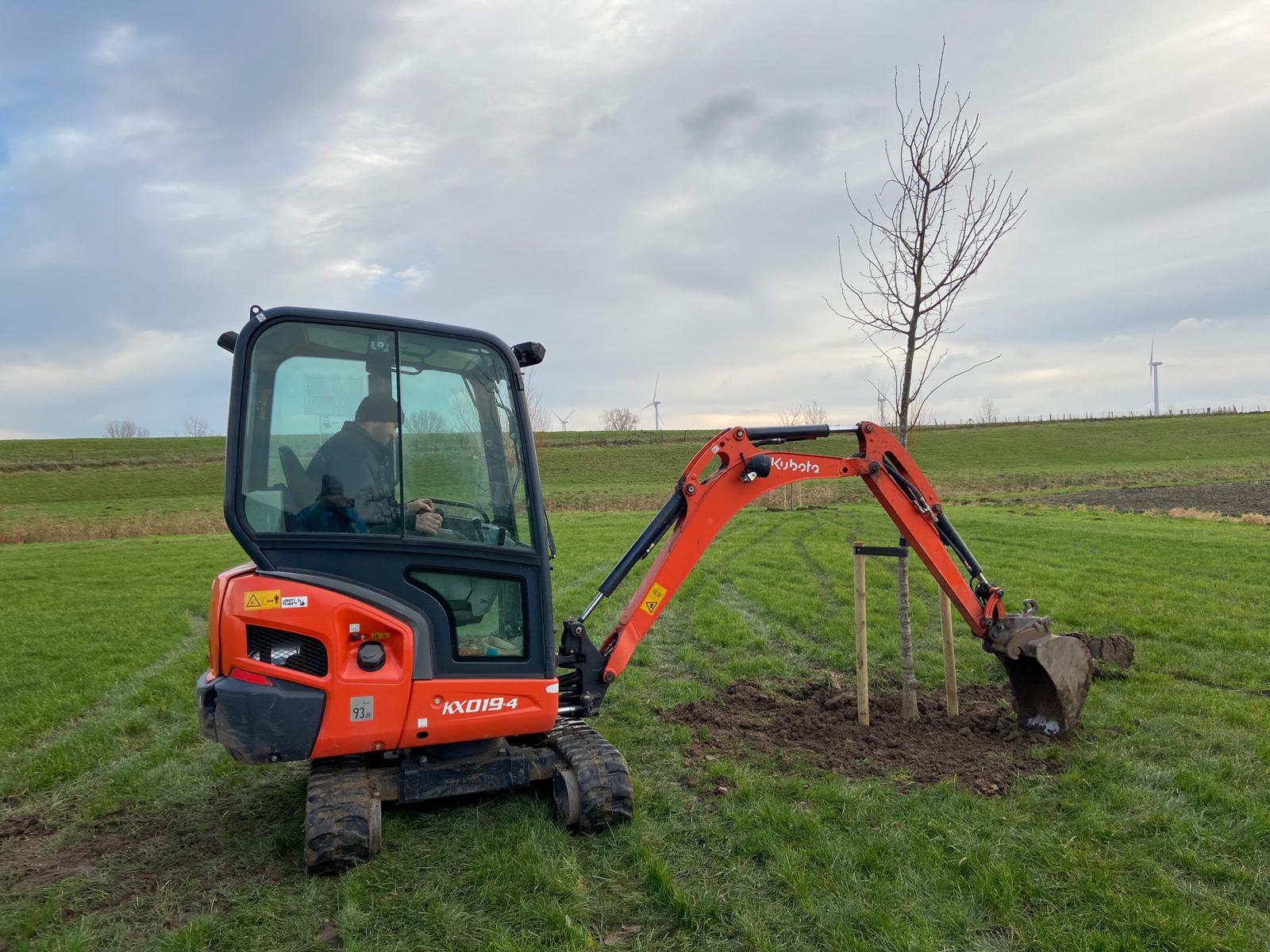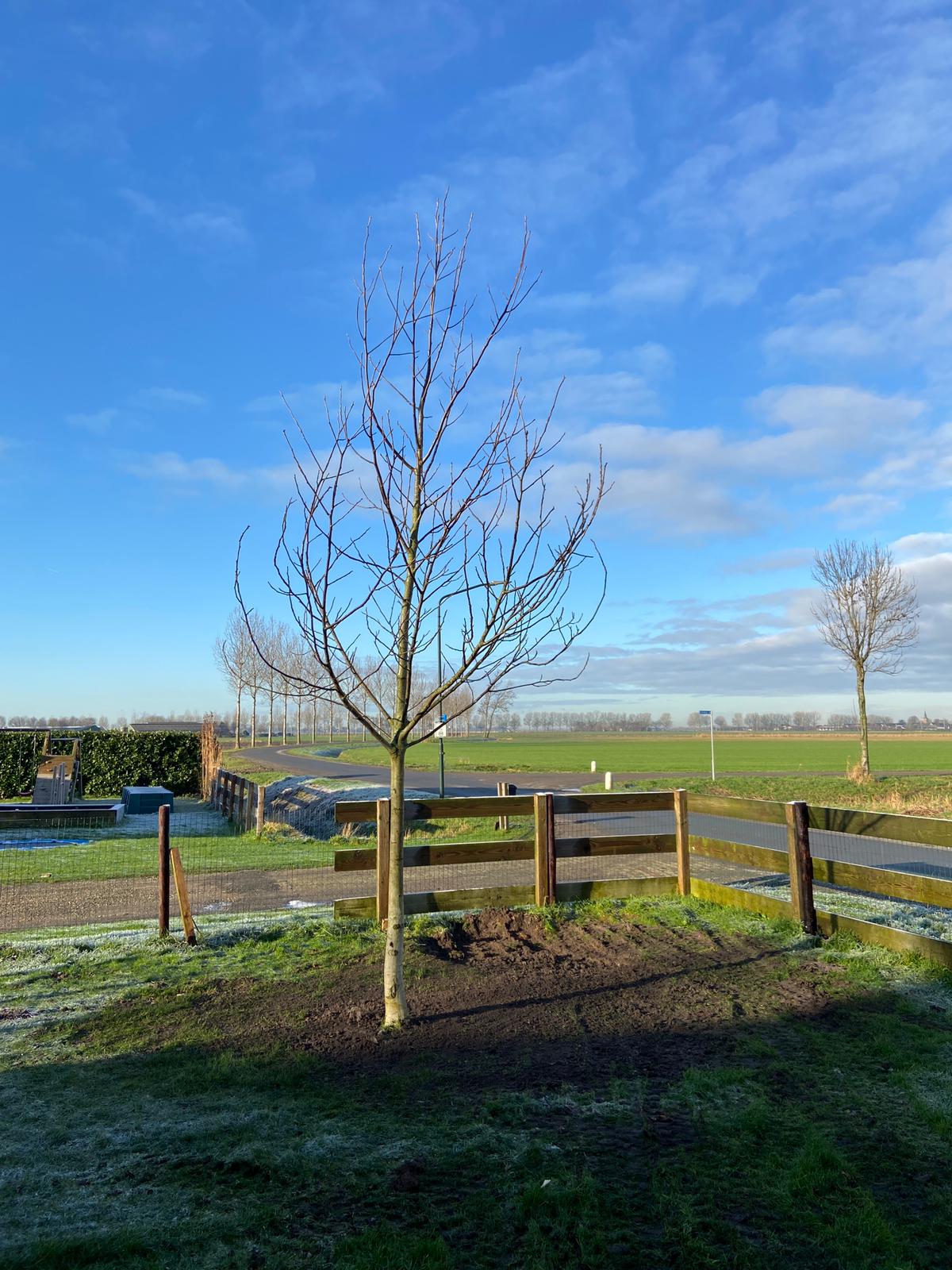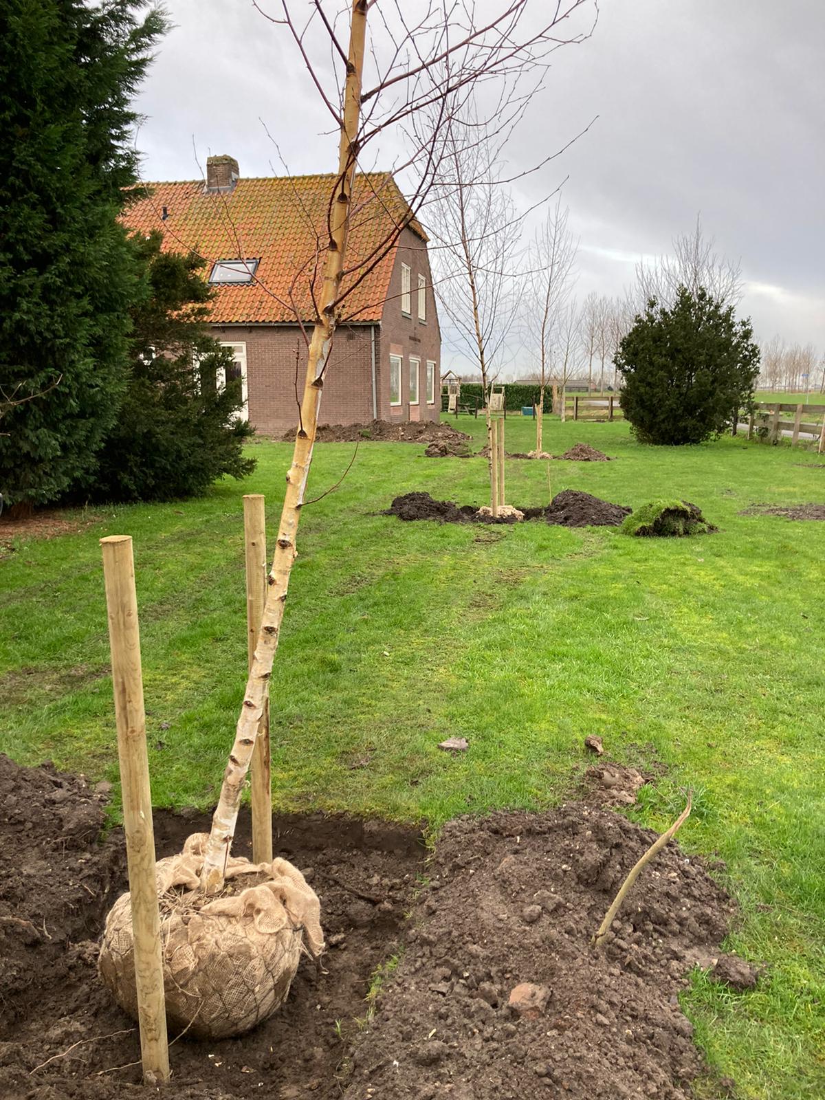 We hebben een aantal mooie nieuwe bomen geplant bij de boerderij en op het veld.