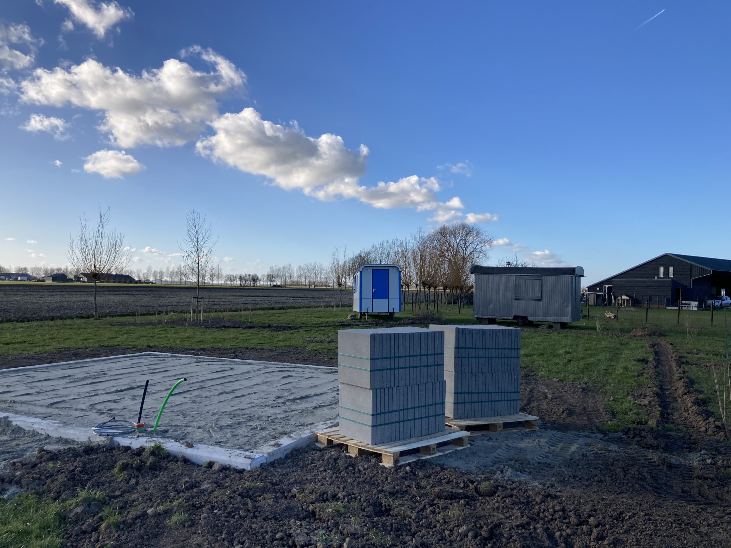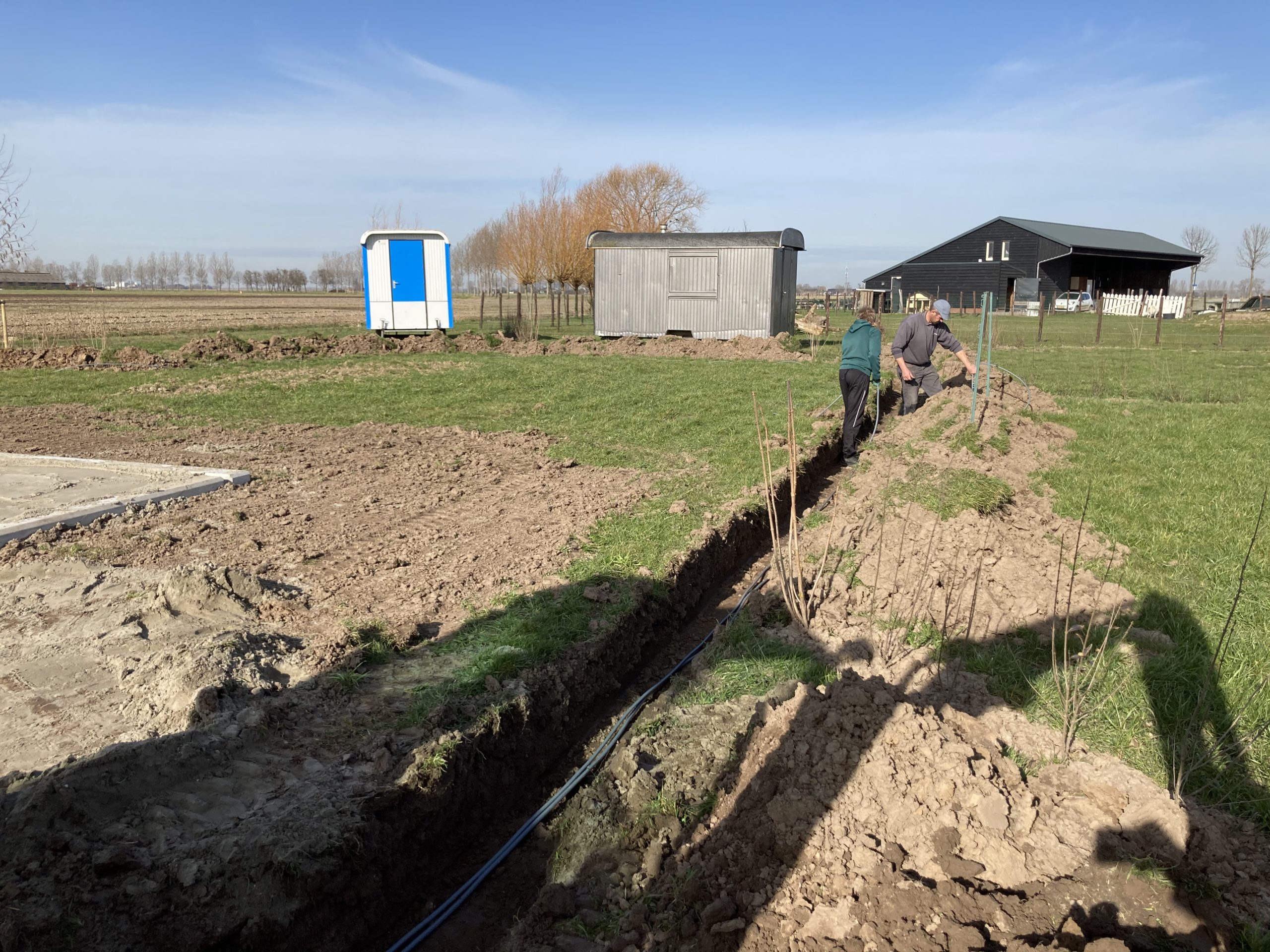 We hebben op het veld, naast de toekomstige vijver, 2 hele grote buizen geplaatst om te spelen. Bij de pipowagens en het gezinsveld is elektra en water in de grond gelegd. De voorbereidingen zijn getroffen voor de bestrating voor het sanitair gebouw en de lounge.