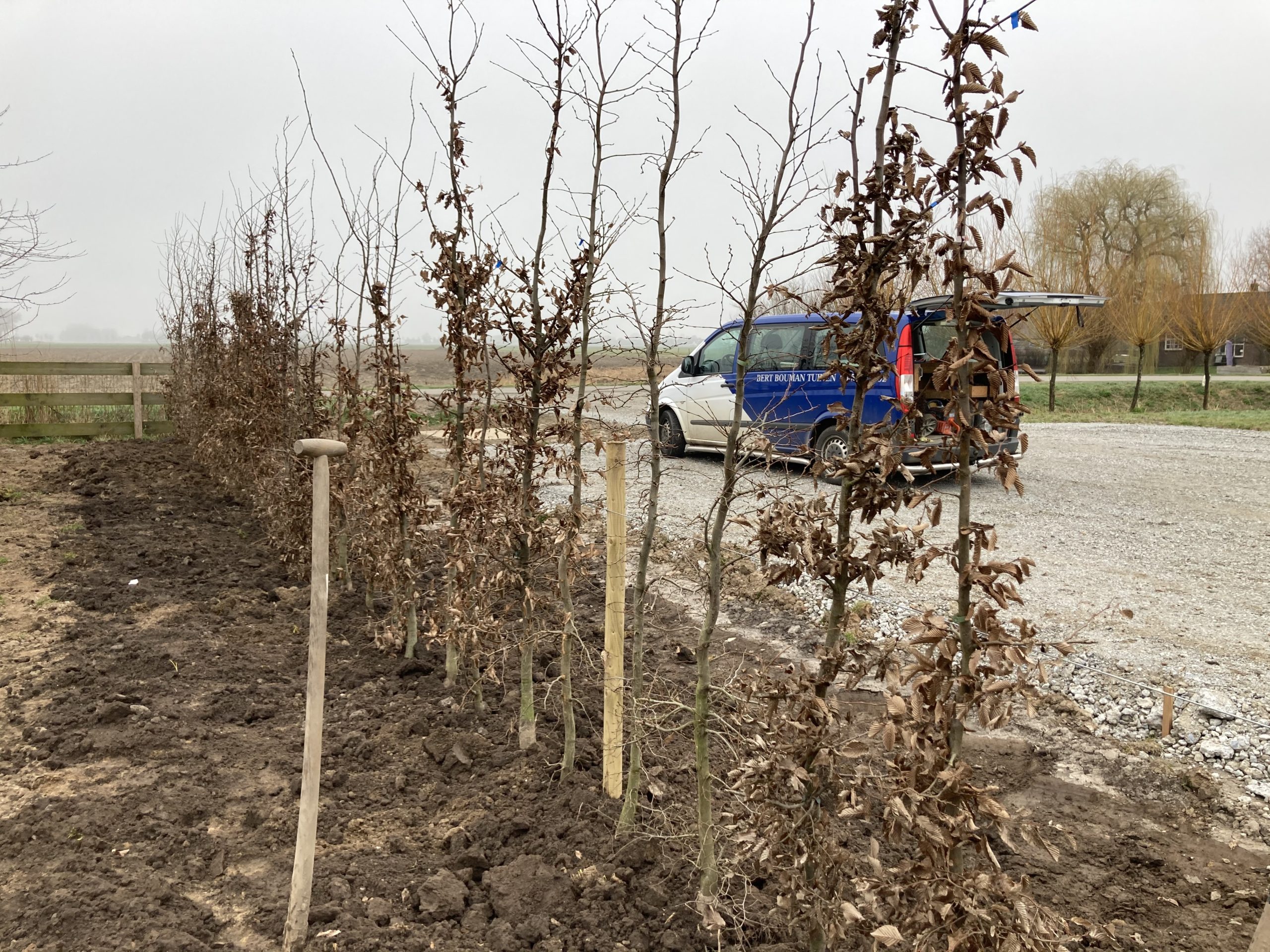 Vrijdag hebben we het nieuwe terras bij de horeca gelegd (130m²) en zaterdag hebben we nog ever door gebeukt door een beuken haag aan te planten naast de parkeerplaats. Zondag hadden we vooral spierpijn 😉